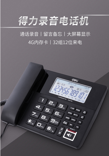 得力(deli)799 大屏幕录音留言座机 白色背光温度显示电话机 万年历显示固定电话 附赠4G内存卡