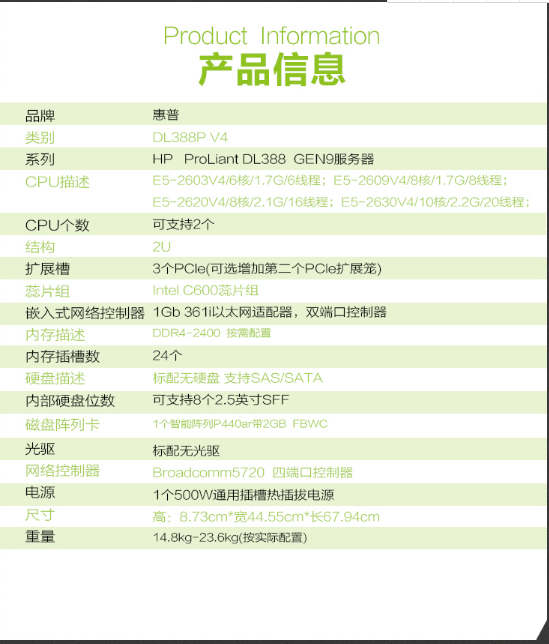 惠普(hp) DL388 Gen9 HPE 2U机架式服务器 至强E5系列