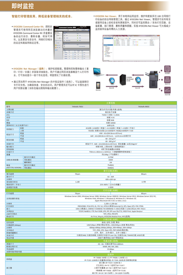 京瓷(KYOCERA) 7002i 黑白激光复印打印机多功能A3数码复合机