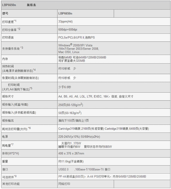 佳能(Canon) LBP6650n 黑白激光网络打印机 33页/分钟,月打印负荷50000张,网络打印