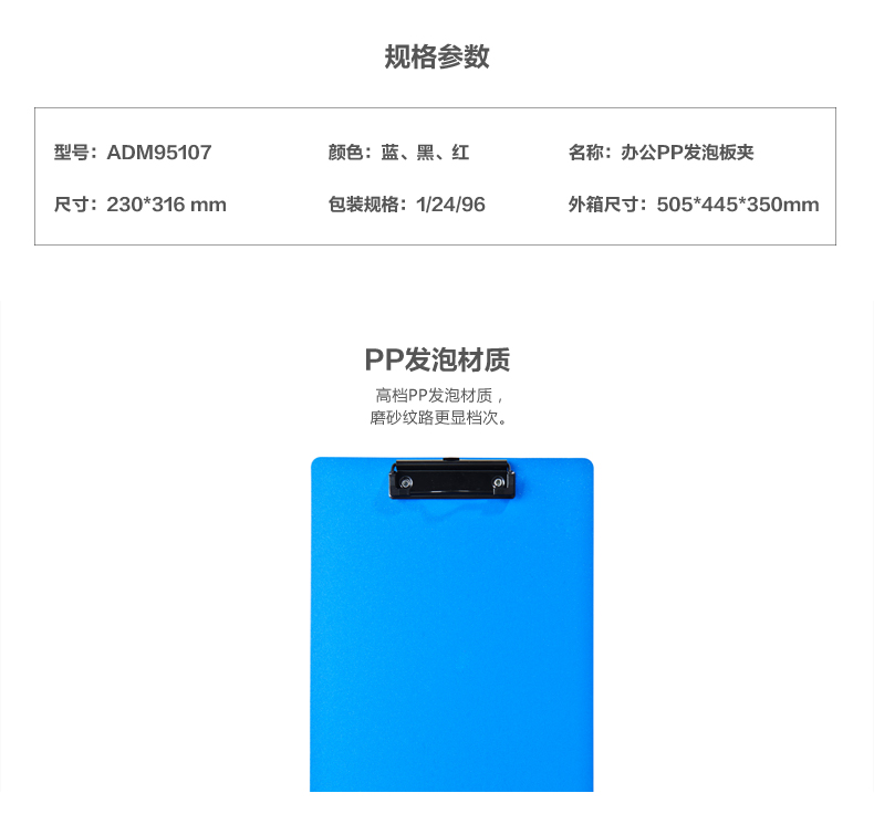 晨光A4 PP发泡板夹蓝色ADM95107