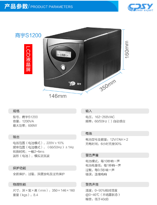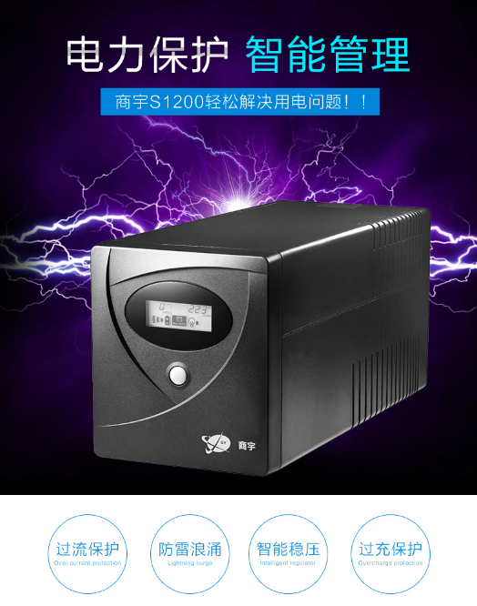 商宇 商宇UPS不间断电源S1200LCD 600W 可带服务器电脑断电45分钟
