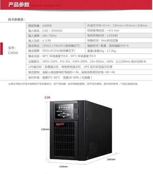 山特C2K在线式UPS不间断电源1600W超级稳压服务器自动关机内置电池