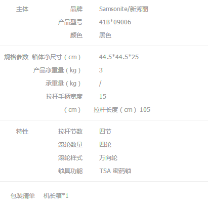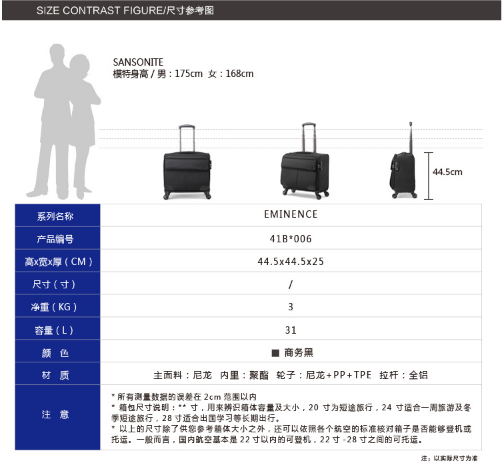 新秀丽Samsonite EMINENCE商务 机长箱 41B*09006 黑色18英寸
