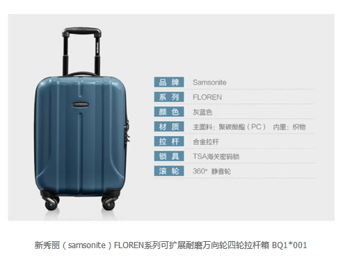 新秀丽(samsonite)FLOREN系列可扩展耐磨万向轮四轮拉杆箱 BQ1*51001 蓝色 20寸