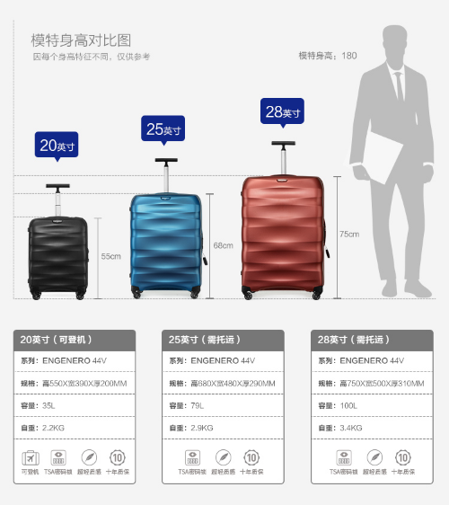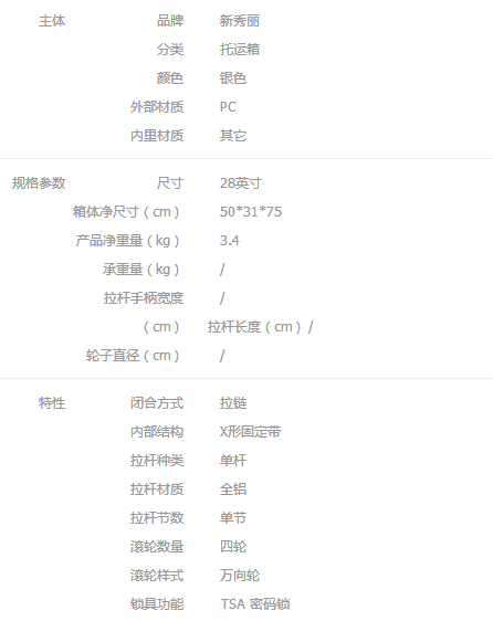 新秀丽(Samsonite)ENGENERO优雅女士万向轮拉杆行李箱旅行箱 44V*25712 银色28英寸