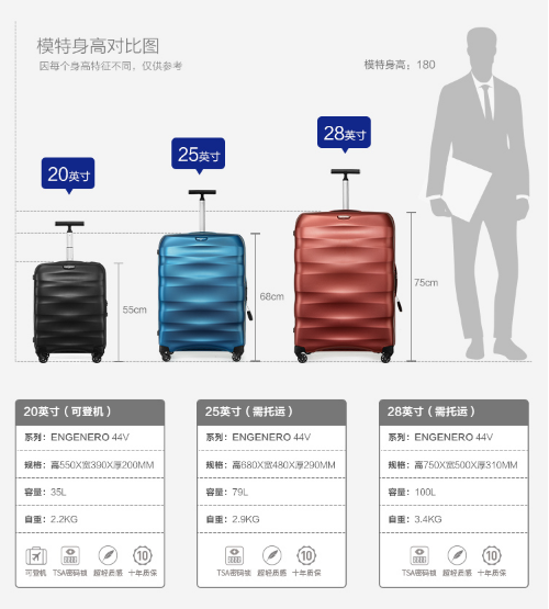 新秀丽(Samsonite)ENGENERO优雅女士万向轮拉杆行李箱旅行箱 44V*01712 蓝色28英寸