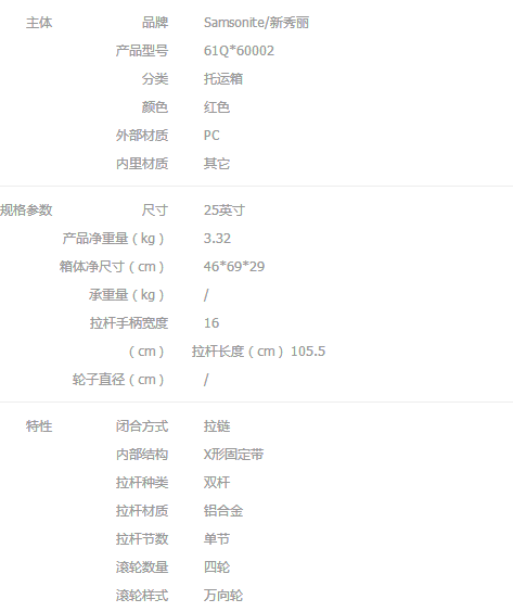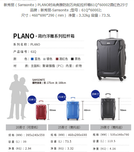 新秀丽(Samsonite)PLANO时尚典雅防刮女士万向轮拉杆箱61Q*60002酒红色25英寸