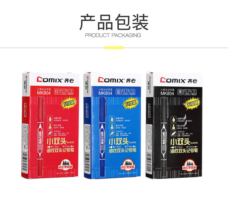 齐心 MK804 小双头记号笔 黑 12支/盒 (单位:盒)