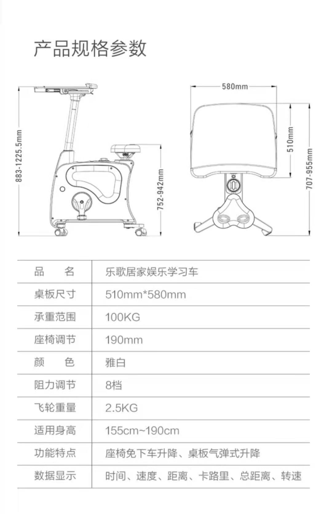 乐歌乐小白可升降可移动动站立办公桌健身车居家多功能娱乐学习车无升降台V9U