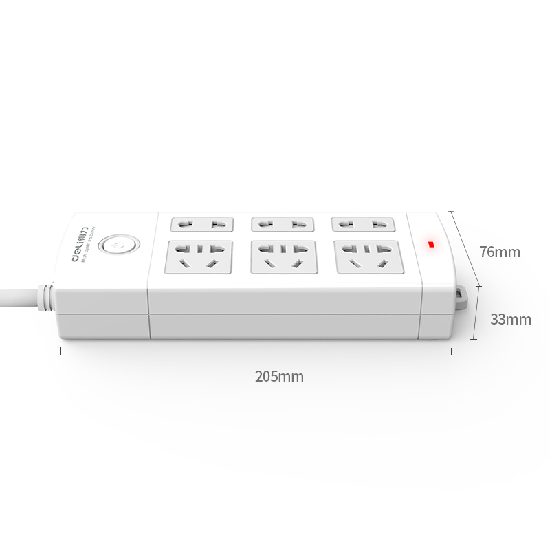 得力18208插座_3+3_2米_PVC袋装(白)(只)