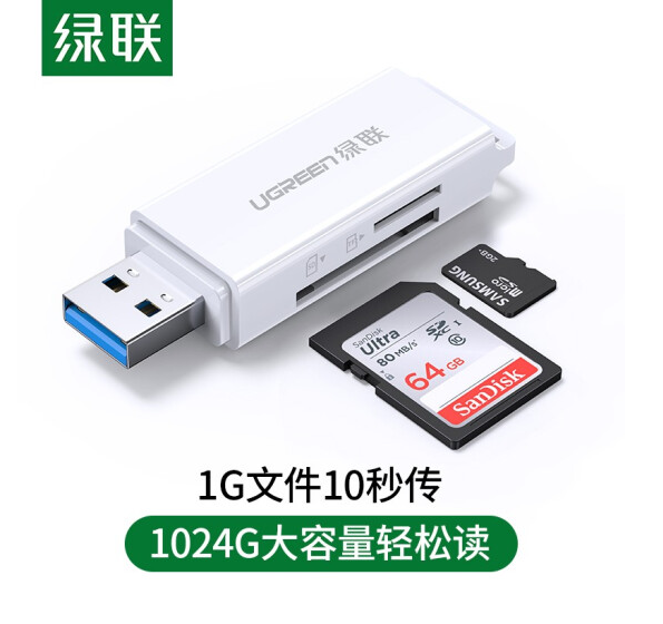 绿联(UGREEN)CM104(40751) USB3.0高速 双卡槽设计多功能SD/TF二合一读卡器 WLSZ06281244289928